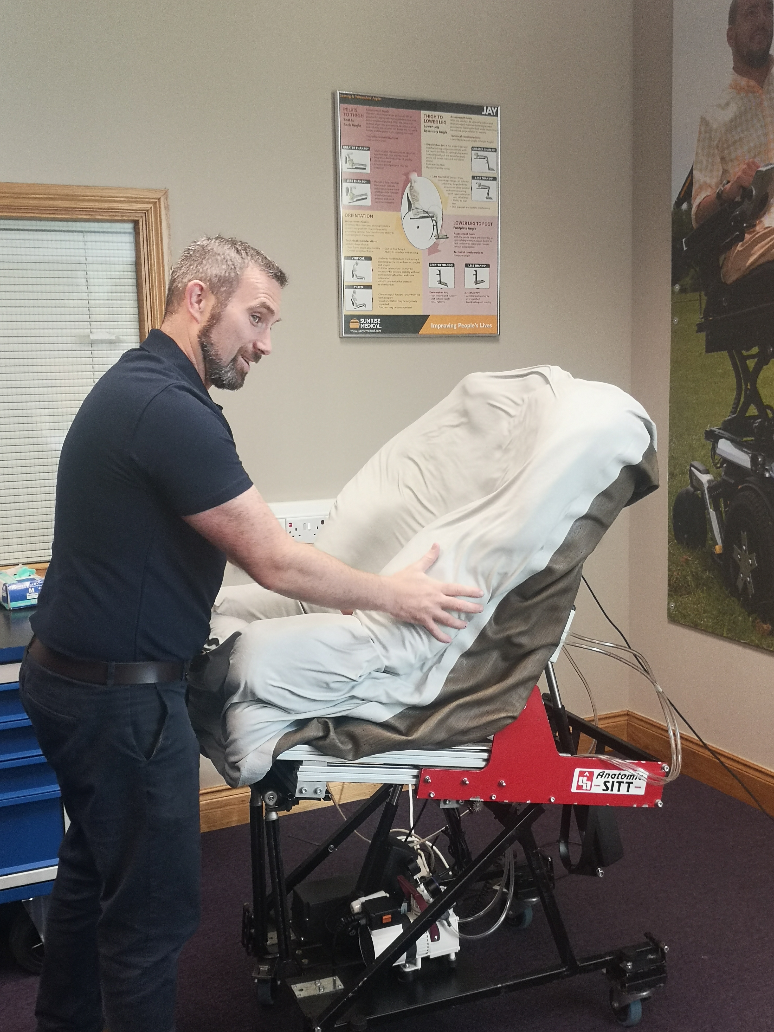 - Initial interview: Daniel will carry out at an informal conversational style information gathering interview at the beginning of the assessment where questions are asked around current specialist equipment in use, medical history including, past or future surgeries, pressure care (history of pressure sores), pain and medication etc. Daniel will review functional abilities or limitations, transfers, tone / spasticity, ambulation, limb function and communication. An assessment of the sitting tolerance in the current system and the clients transport requirements